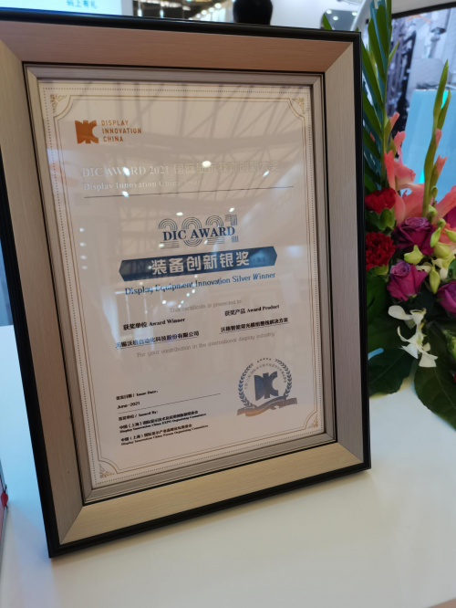 本次参展的背光模组组装设备也获得了“DIC AWARD 2021全球显示技术创新大奖—显示装备创新银奖”。