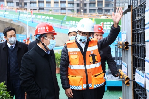 在粤海城南北地块项目,观摩团依次到首层智慧馆及党建馆、10层样板层、34层作业层检查,一路了解项目的基本情况,对项目5G智慧运用及质量工艺样板、网格化分工、平面动态规划、8S标准化管理、超高层垃圾通道创新施工技术等有了充分认识。