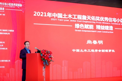 中国土木工程学会副理事长尚春明对获2021年中国土木工程詹天佑奖优秀住宅小区金奖的优秀项目表示衷心祝贺,他表示,绿色低碳发展是建筑业的新趋势。建筑业应加快产业绿色转型,提高技术创新能力,坚决扛起碳达峰碳中和以及绿色发展责任,在“双碳”目标实现过程中起到引领作用,为建设美丽中国、共建美丽世界作出积极贡献。