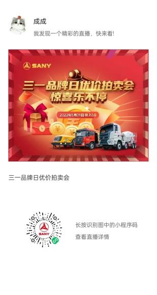今晚7点!三一品牌日直播抢购车载泵/搅拌车/砂浆泵,赚佣金