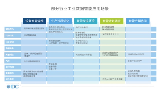常见的工业数据智能应用大致可以分为设备智能运维、生产过程优化、智能计划调度、智能安监环控以及智能产销协同5大类。