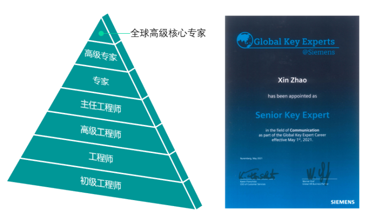 大家可能比较好奇,“西门子全球高级核心专家”到底是个什么段位?那我就来给大家介绍下:西门子数字化工业集团(DI)目前有超过900位工程师,工程师晋级之路有7级(从初级工程师-->工程师-->高级工程师-->主任工程师-->专家-->高级专家-->全球高级核心专家),每级晋升都是通过严格的考核,评审,认证等环节。西门子全球 高级核心专家是目前数字化工业集团的工程师最高等级的称号,在中国数字化工业集团仅有十几位。