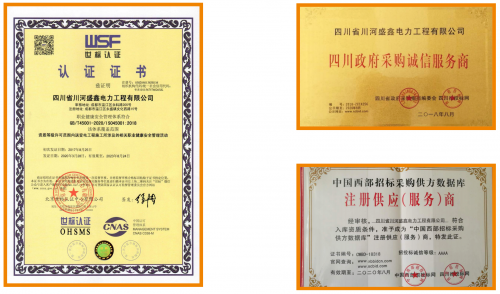 四川省川河盛鑫电力工程有限公司部分企业资质、荣誉、专利