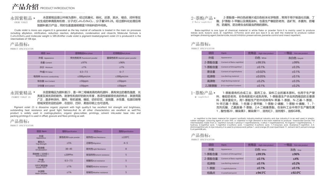 曲靖众一精细化工自创业以来,一直专注于绿色环保新能源领域,是一家专业化、现代化、规模化的化工企业。市场以中国为主、面向全球销售永固紫等化工产品。合作的生产厂家曲靖众一精细化工股份有限公司始建于2006年7月,位于曲靖市麒麟区越州工业园区,是一家以煤焦油及其下游产品为主要原料集生产、销售、科研为一体的新型民营精细化工企业。