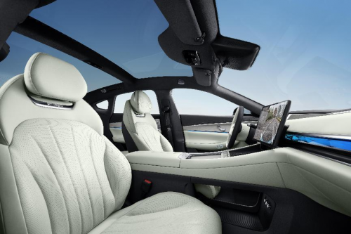 在空间设计上,星纪元ES也体现出了极致的豪华与宽敞,其整车尺寸为4945mm x 1978mm x 1467mm,展示了同级车型中无与伦比的大空间优势。特别是,内部净空间得房率达到70.2%,在同级车型中拥有最大空间利用率,真正实现了豪华大平层的概念。此外,星纪元ES在通透性设计上也表现卓越,车顶拥有2.1平米的透光面积,通透率高达75%,在同级车型中处于领先地位。