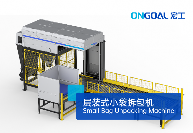 其中,自动化投料作为物料处理最前端的工序,自然是宏工的重点开发领域。除了前述提到的全自动吨袋拆包机,公司还推出了全自动洁净式小袋拆包机、全自动层装式小袋拆包机等系列设备,全面覆盖不同行业、不同包装形式的物料的拆包投料需求。